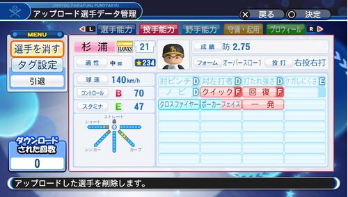 1970年成績 2.75 1勝1敗 球速 わかんない。奪三振がかなり減ったので大幅に遅くした ケガしにくさE 血行障害。結構投げているのでFではないかなと 回復F 血行障害。二日連続登板無し 一発 4被本塁打。被本塁打率1.01 お詫び フォームをアンダースローにす…