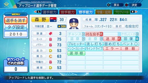 パワナンバー:11100 20590 52128 森野将彦 (2010) 【パワプロ2018】とほぼ同じ。 送球F 流石にGはやりすぎだった。 ラインドライブ これをつけたかっただけ。