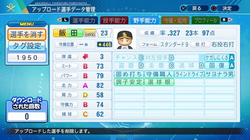 パワナンバー:11500 70880 07233 ケガしにくさA 回復A 連続試合出場記録から。まだこの年は始まったばかりではありますが。 固め打ち リーグ二位の16猛打賞。 守備職人 完璧と言われる一塁守備。 ラインドライブ センター方向にライナーを打つスタイル。 …