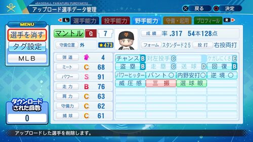 パワナンバー:11100 20817 26468 ロジャー・マリスと合わせて115本塁打のコンビ最高記録。 対左投手C 対右投手(左打席) .291(347-101) 43本塁打 OPS1.131対左投手(右打席) .371(167-62) 11本塁打 OPS1.145 右打席は打率は高いが本塁打が少なく、OPSは同…