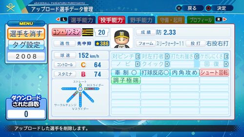パワナンバー:11000 41415 43267 「尹」の字はあると思ってた。 기록실 | 기록 | KBO https://namu.wiki/w/윤석민(투수) 球速 自己最速155キロ、パワメジャ2009及びプロスピ6は149キロ、二つの間をとった。 実際140キロ台中盤が多かったので最速はこのくら…