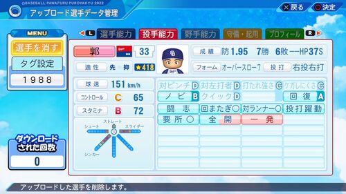 パワナンバー:11300 30216 77726 対ピンチD 対ランナー〇 郭源治1988年得点圏被打率.235(81/19)全被打率.191。と、数字だけ見て判断するのはダメだよという例 — ともぴー (@tomopih23) 2020年4月12日 ついでに。郭源治1988年対右打者.186(188/35)対左…